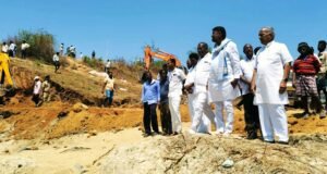 ಒಡೆದು ಹೋಗಿರುವ ತುಂಗಭದ್ರಾ ಎಡದಂಡೆ ಕಾಲುವೆಯ ಮೈಲ್ 13ರ ವೀಕ್ಷಣೆ
