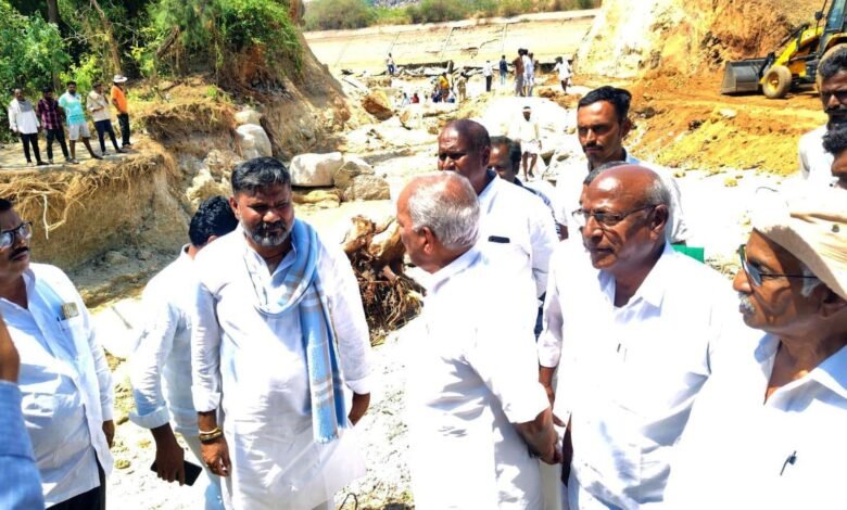 ಕೊಪ್ಪಳ ಮಾರ್ಚ್ 20 ತುಂಗಭದ್ರಾ ಎಡದಂಡೆ ಕಾಲುವೆಯ ಮೈಲ್ 13ರ ಕಾಲುವೆ ಒಡೆದು ಹೋಗಿರುವ ಪರಿಣಾಮದಿಂದ ನಾಶವಾದ ಬೆಳೆಗೆ ರಾಜ್ಯ ಸರ್ಕಾರದಿಂದ ಪರಿಹಾರ ನೀಡಲಾಗುವುದು ಎಂದು ಸಣ್ಣ ನೀರಾವರಿ, ವಿಜ್ಞಾನ ಮತ್ತು ತಂತ್ರಜ್ಞಾನ ಸಚಿವರು ಹಾಗೂ ವಿಧಾನ ಪರಿಷತ್ ಸಭಾ ನಾಯಕರಾದ ಎನ್. ಎಸ್. ಭೋಸರಾಜು ಹೇಳಿದರು.ಅವರು ಶುಕ್ರವಾರ ಕೊಪ್ಪಳ ತಾಲ್ಲೂಕಿನ ಬಸಾಪೂರ ಗ್ರಾಮದ ಹತ್ತಿರ ಒಡೆದು ಹೋಗಿರುವ ತುಂಗಭದ್ರಾ ಎಡದಂಡೆ ಕಾಲುವೆಯ ಮೈಲ್ 13ರ ವೀಕ್ಷಣೆ ಮಾಡಿದರು. ನಂತರ ಪತ್ರಿಕಾ ಗೋಷ್ಠಿಯನ್ನುದ್ದೇಶಿಸಿ ಮಾತನಾಡಿದರು.ತುಂಗಭದ್ರಾ ಎಡದಂಡೆ ಕಾಲುವೆಯ ಮೈಲ್ 13ರ ಕಾಲುವೆ ಒಡೆದ ಪರಿಣಾಮವಾಗಿ ಸುಮಾರು 92 ಹೆಕ್ಟೇರ್ 10 ಗುಂಟೆ ಬೆಳೆ ನಾಶವಾಗಿದೆ ಎಂಬ ಮಾಹಿತಿ ಇದೆ. ರೈತರಿಗೆ ತಕ್ಷಣ ಪರಿಹಾರ ನೀಡುವಂತೆ ಮಾನ್ಯ ಮುಖ್ಯಮಂತ್ರಿಗಳ ಗಮನಕ್ಕೆ ತಂದು ಸೂಕ್ತ ಕ್ರಮ ಕೈಗೊಳ್ಳಲಾಗುವುದು. ಕರ್ನಾಟಕ ನೀರವಾರಿ ನಿಗಮ ನಿಯಮಿತದಿಂದ (ಕೆ.ಎನ್.ಎನ್.ಎಲ್) ಪ್ರತಿ ಹೆಕ್ಟೇರಿಗೆ ಸರ್ಕಾರವು ನಿಗದಿಪಡಿಸಿದಂತೆ ನಷ್ಟವಾದ ಬೆಳೆಗೆ ಪರಿಹಾರ ಒದಗಿಸಲಾಗುವುದು ಎಂದರು.